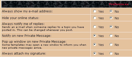 Pop up window on new Private Message: Selecting yes means when you log in a window will pop up to inform you that you have received a Private Message on your account. Selecting no means the only indication will be at the top of the forum where it will say you have a private message waiting for you. We recommend yes.