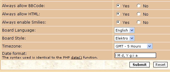 Board Language: and Board Style: are features not used at HD Library. There is nothing here to change.